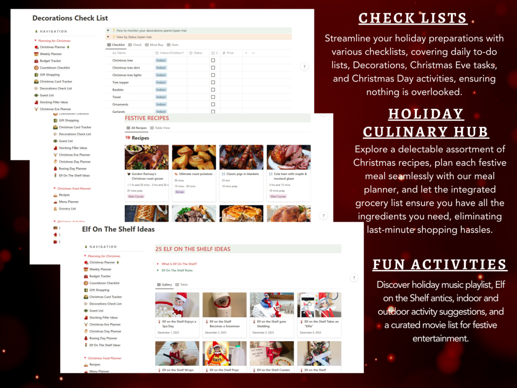 You can build your holiday menu, generate grocery lists that update automatically, organize stocking stuffer ideas, plan out Elf on the Shelf fun, and even line up your favorite Christmas movies. There’s also a countdown to Christmas to keep the festive mood going strong.